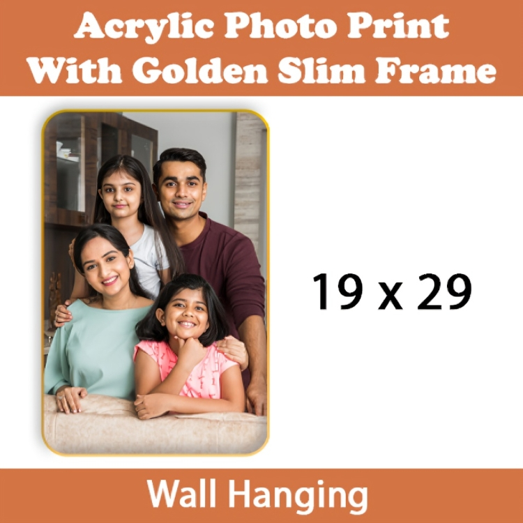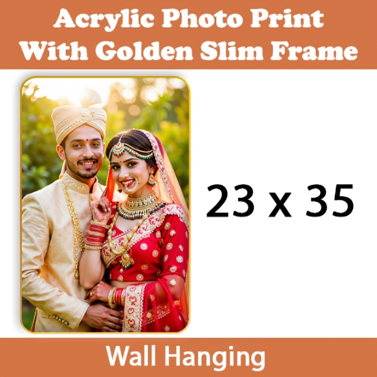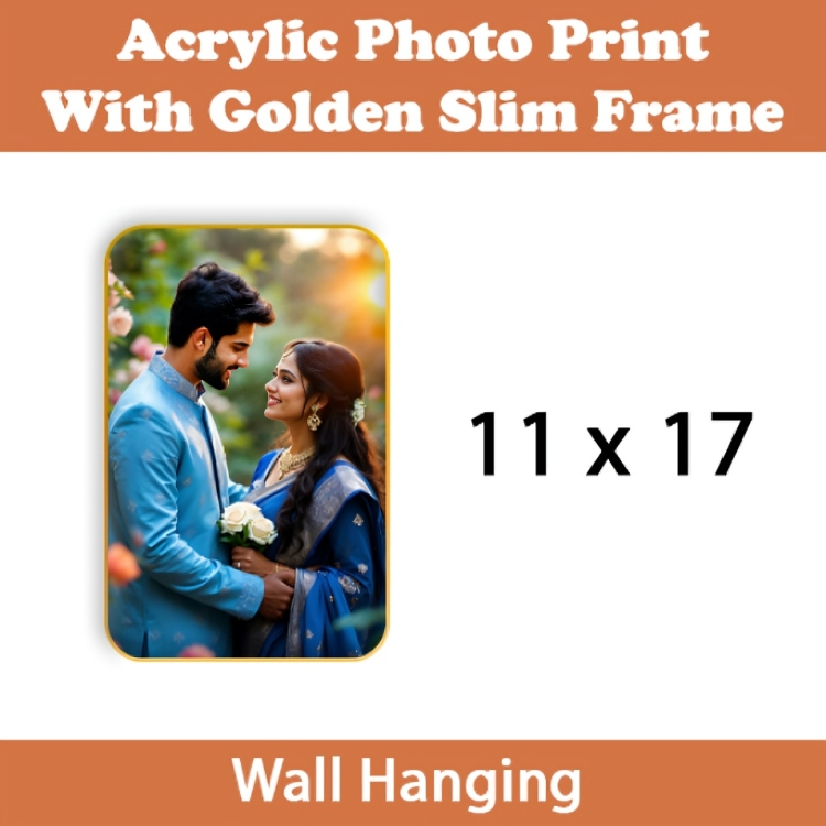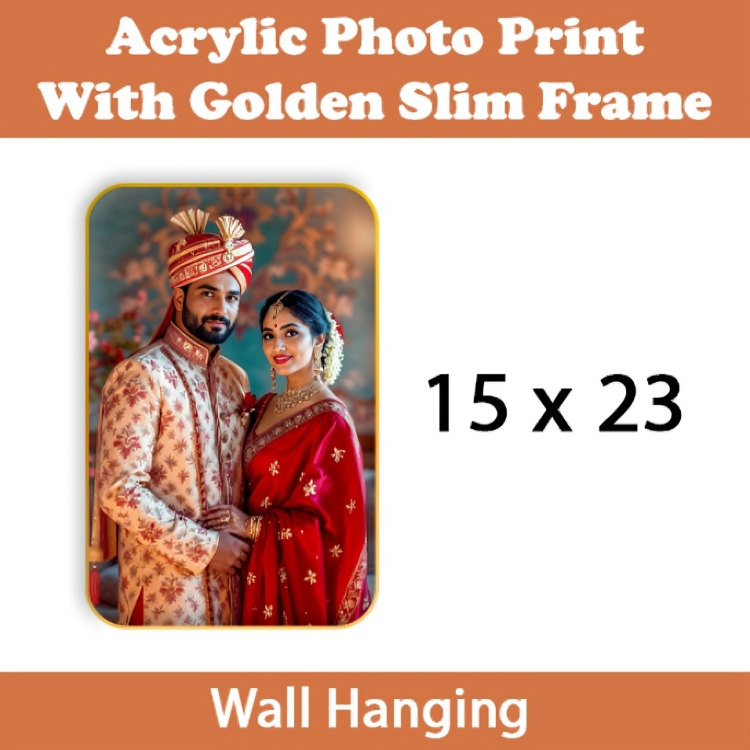 Add sophistication to your space with this Acrylic Rectangle Golden Slim Frame (Portrait). Made with high-quality acrylic and a sleek golden frame, it’s perfect for showcasing cherished memories, certificates, or personalized designs. Its vertical layout suits home interiors, office walls, and makes an ideal gifting choice.