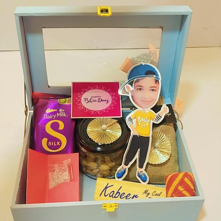Make your brother’s Bhai Dooj truly unforgettable with our Choco Charm Bhai Dooj Personalized Box! 💫 A thoughtful mix of love, sweetness, and surprise — this elegant keepsake box comes with premium chocolates, rich dry fruits, and a custom photo figurine of your brother to add a personal touch. Celebrate your unbreakable bond with this unique and heartwarming gift — because every brother deserves a special reminder of how much he means to you. 💖