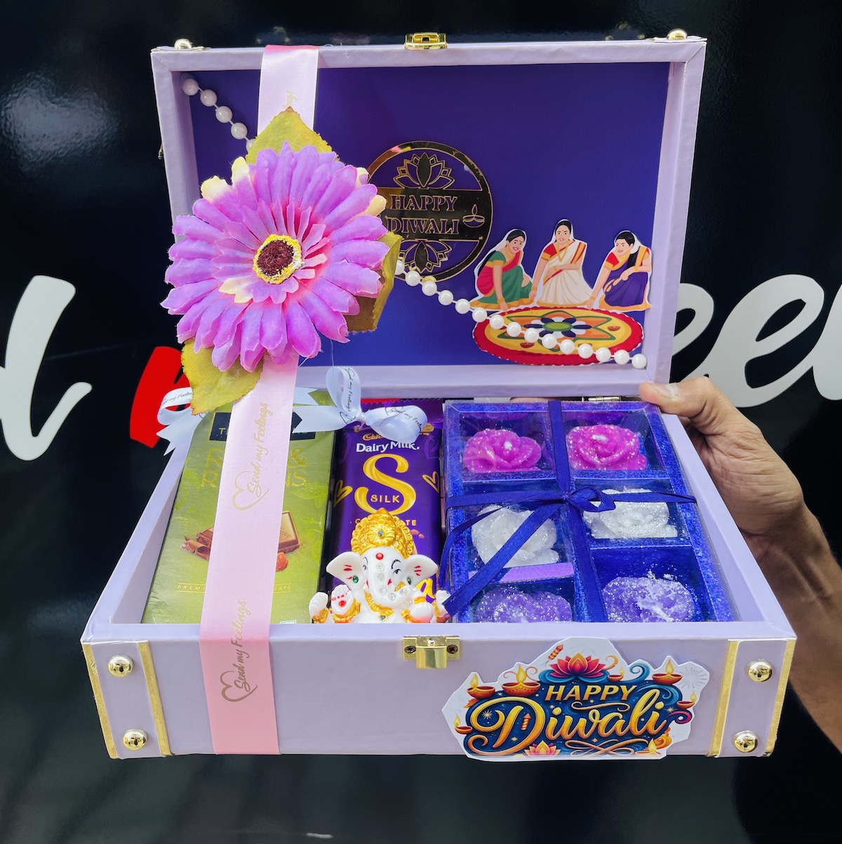 Make this Diwali truly divine with our Divine Delight Diwali Box — a luxurious blend of sweetness, devotion, and elegance. Thoughtfully curated with chocolates, festive treats, and a Ganesha idol, this box radiates joy and togetherness. A perfect token of love to celebrate the festival of lights with family, friends, and colleagues. ✨