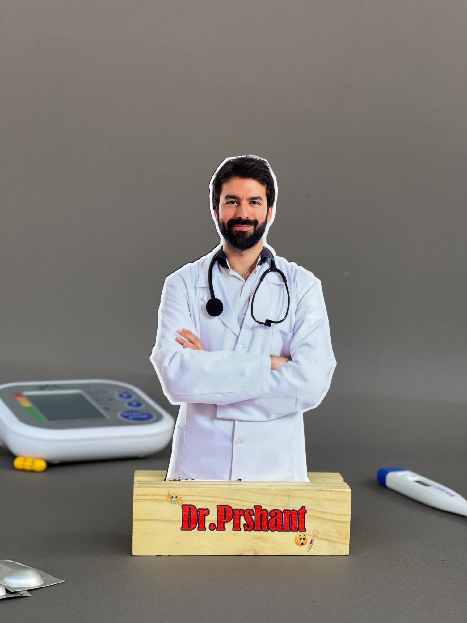 Add a rustic and personalized charm to your space with our Wooden Cutout (4x8). Made from premium MDF wood, this 4-inch wide and 8-inch tall cutout is fixed on a sturdy pinewood base, customized with a name or short message on the front. Perfect for gifting or adding a personal touch to your desk, shelf, or event decor.